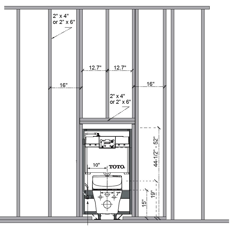 Toto provides a detailed framing plan for their wall-hung toilets.