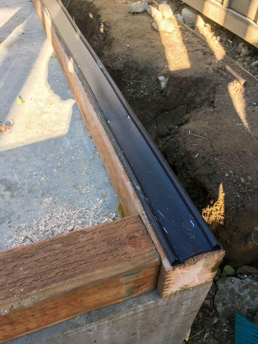 The ADU walls now sit on a new mudsill of pressure-treated 4×4. I’m using a rubber gasket stapled to the bottom of the 4×4 to isolate the wood from the concrete and to also help make the wood-concrete joint air-tight. I ordered the gaskets from Conservation Technologies: http://www.conservationtechnology.com/building_gaskets.html (They are also a good source for Shim Screws for window and door installation.)