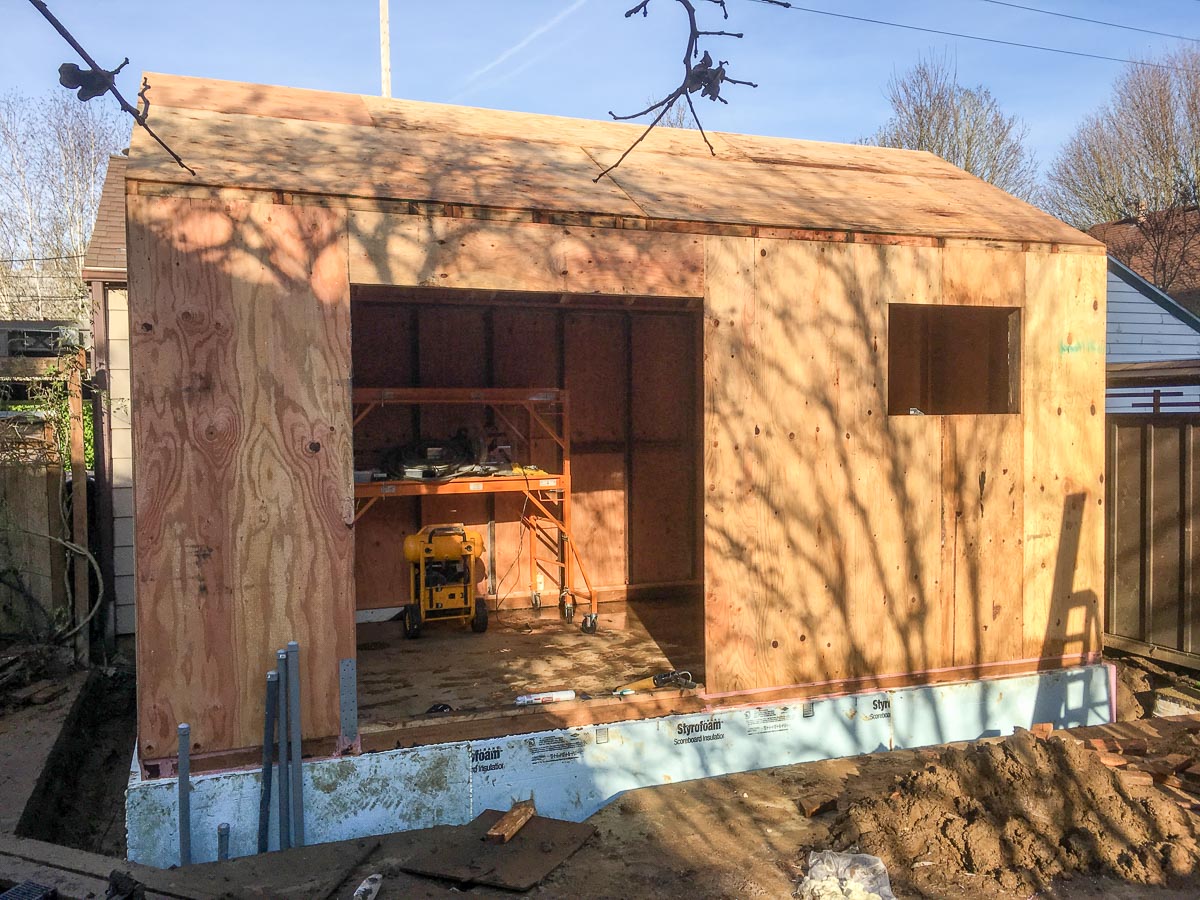It’s been a productive month. The structure is back on the new slab and the main framing and sheathing is complete.